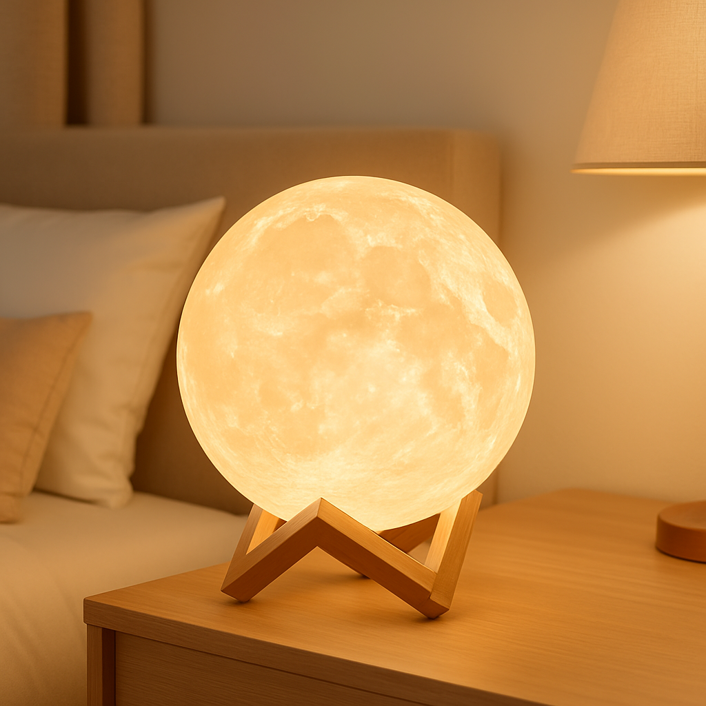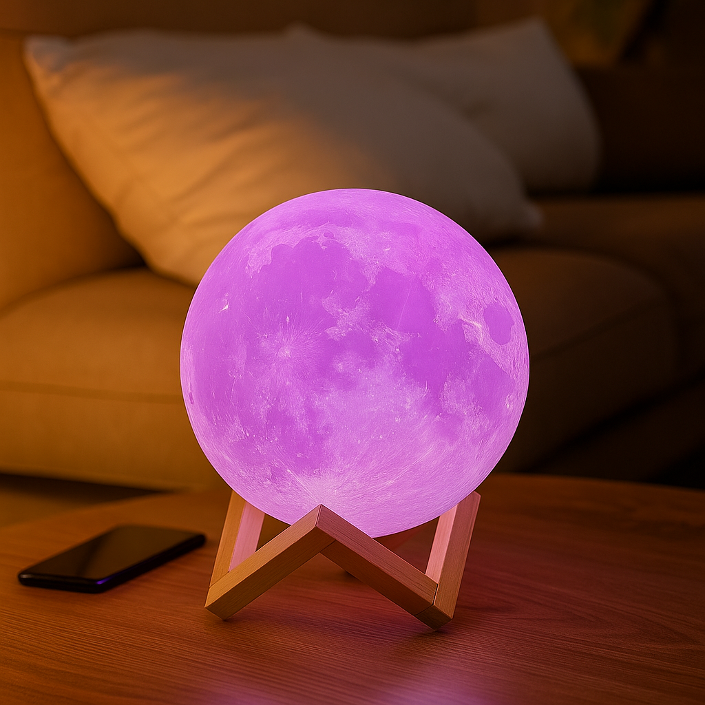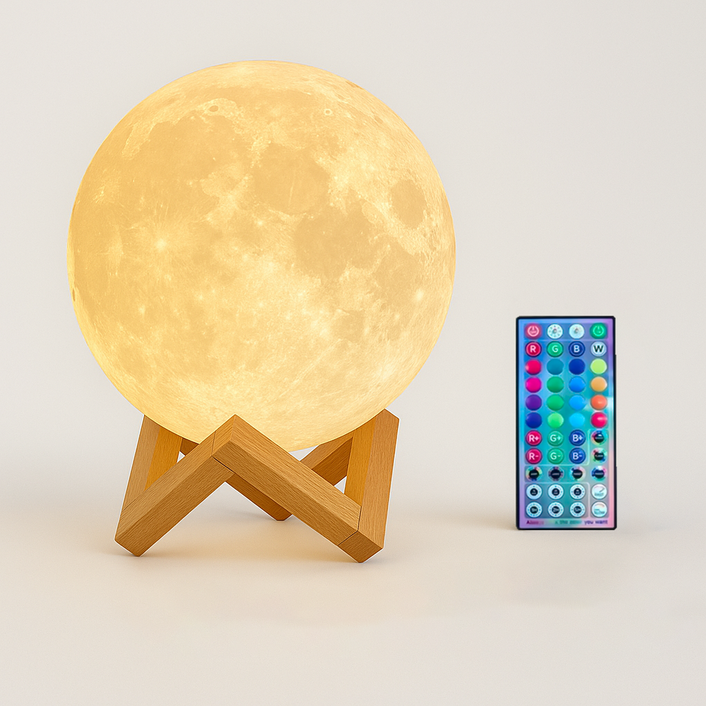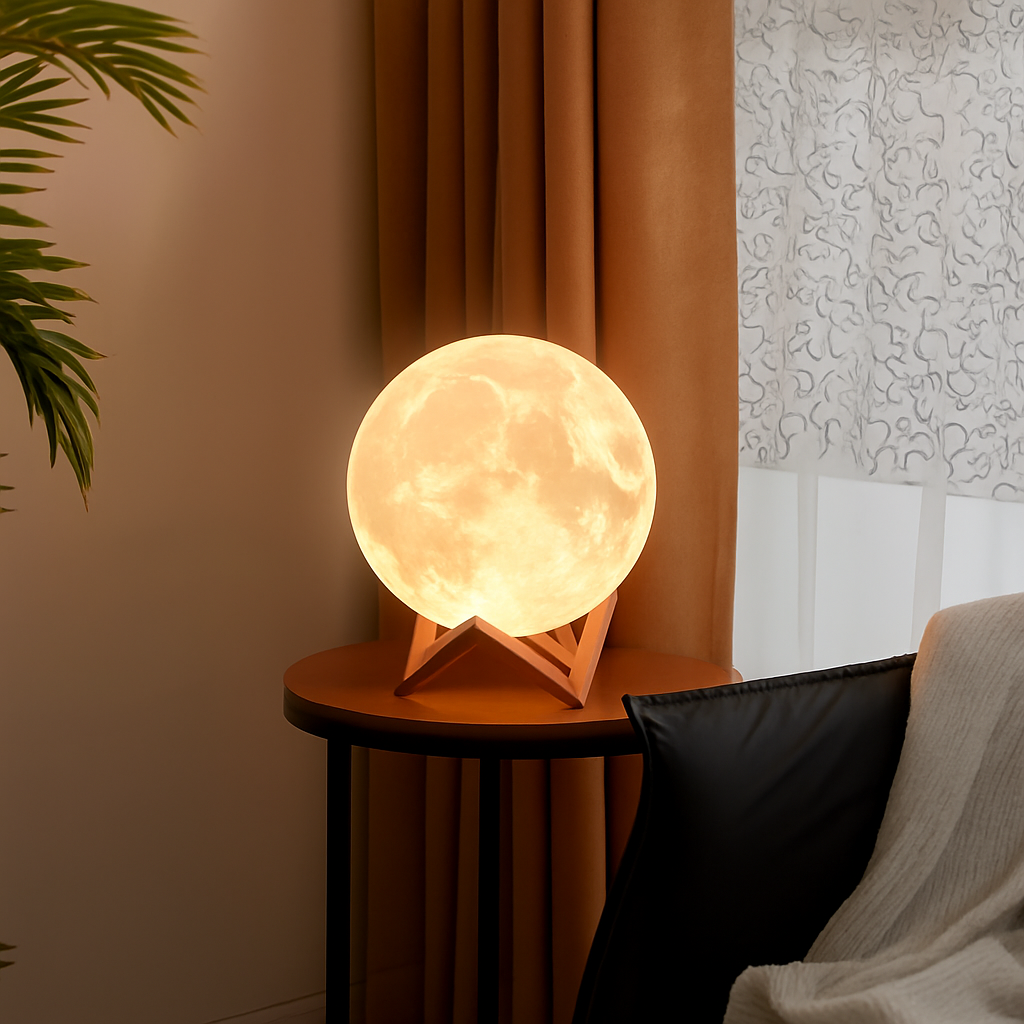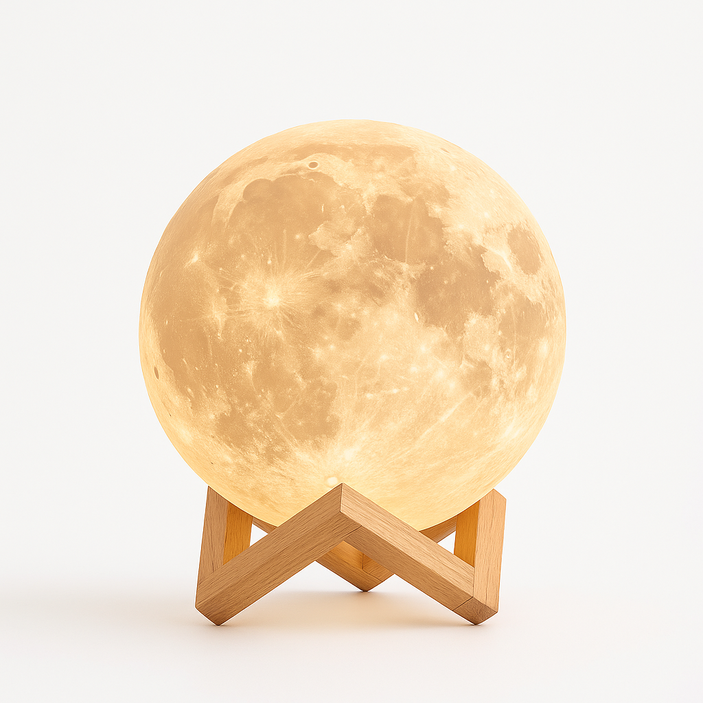 Mit LunaGlow erhältst du eine moderne, vielseitige Mondlampe, die Atmosphäre, Design und Funktion perfekt verbindet – ideal für entspannte Abende und stilvolle Raumakzente.