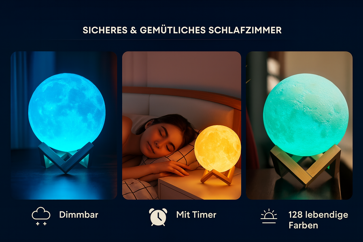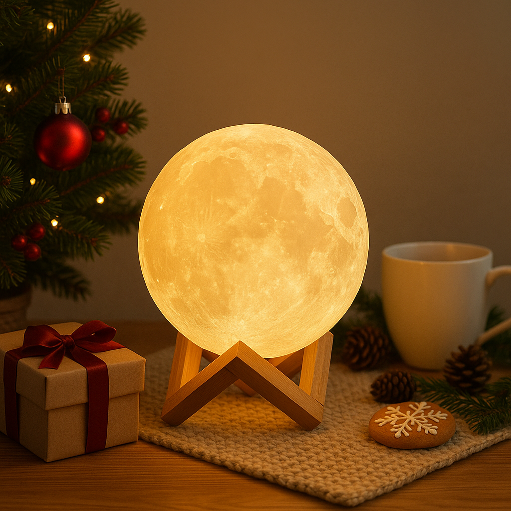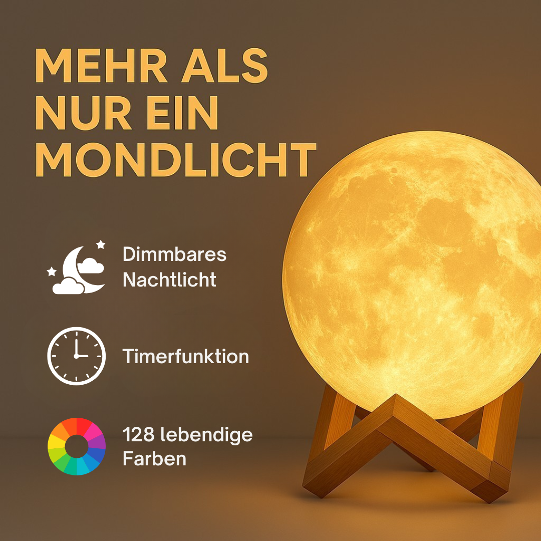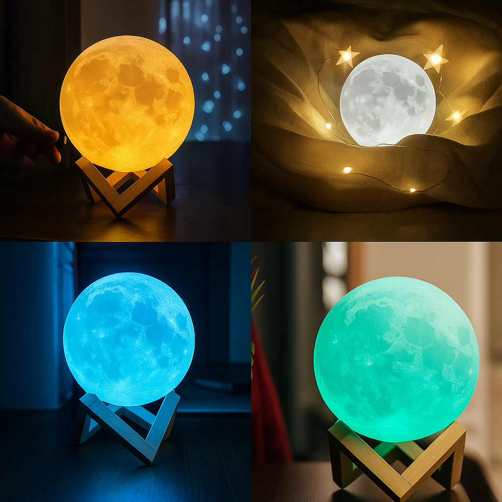 Mit LunaGlow erhältst du eine moderne, vielseitige Mondlampe, die Atmosphäre, Design und Funktion perfekt verbindet – ideal für entspannte Abende und stilvolle Raumakzente.