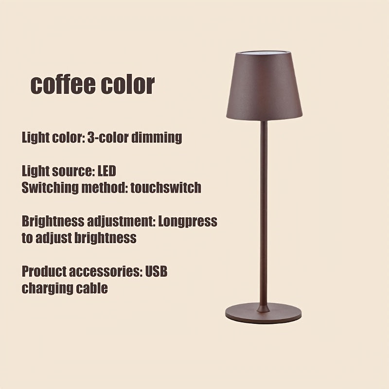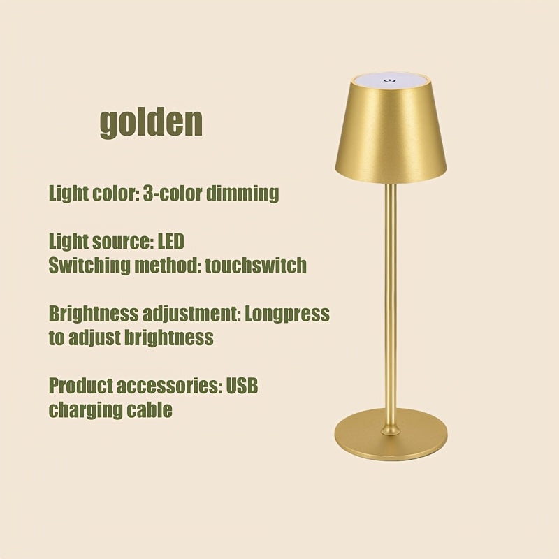 Elegante, dimmbare LED-Tischlampe aus Metall – kabellos, tragbar und perfekt für Schlafzimmer, Wohnzimmer oder Essbereich.